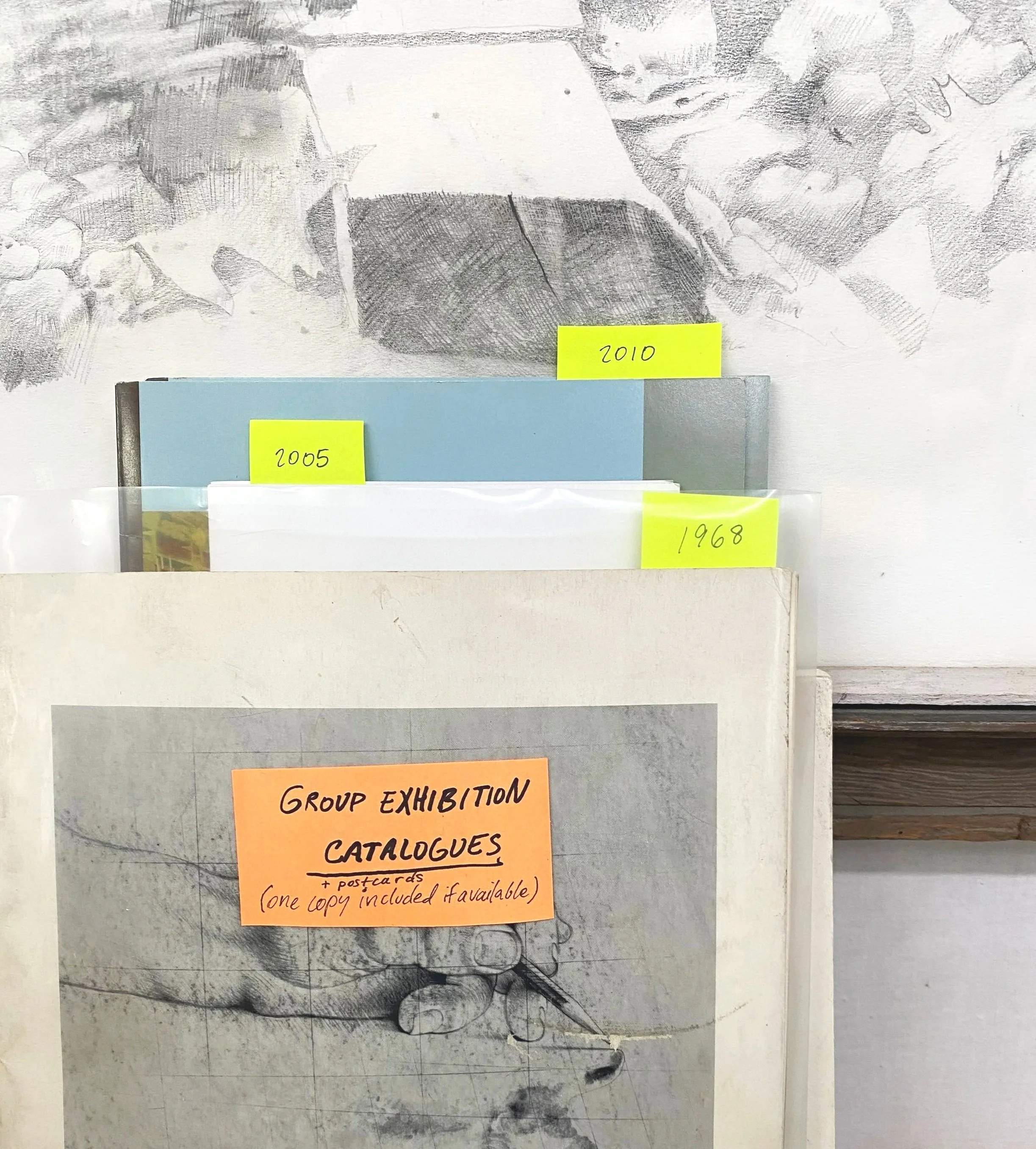 What I can organize are: your physical paperwork (gallery records, awards, exhibition records, financial records, letters, mail, catalogues, etc.) and any digital records of your career and digital records of your artwork.