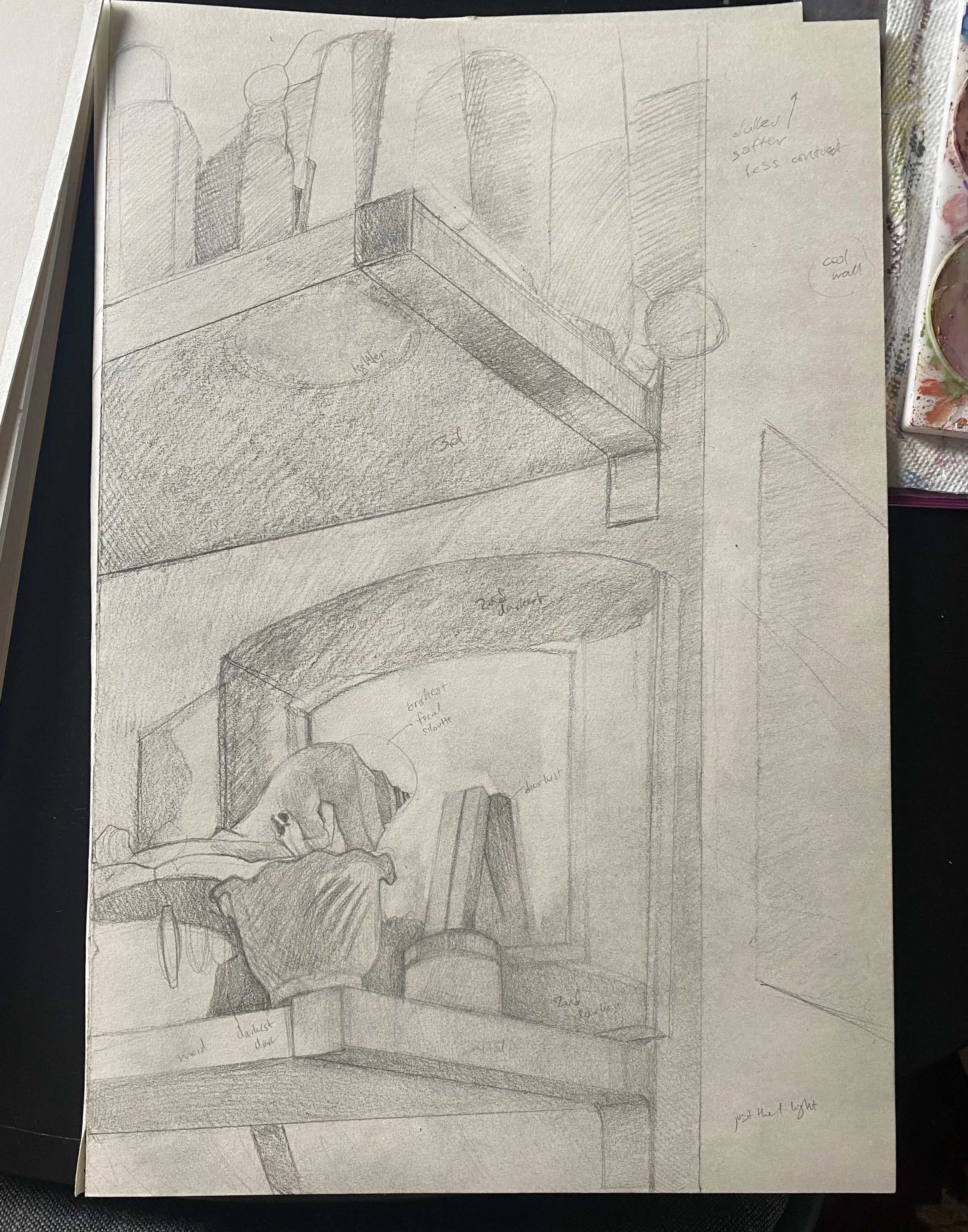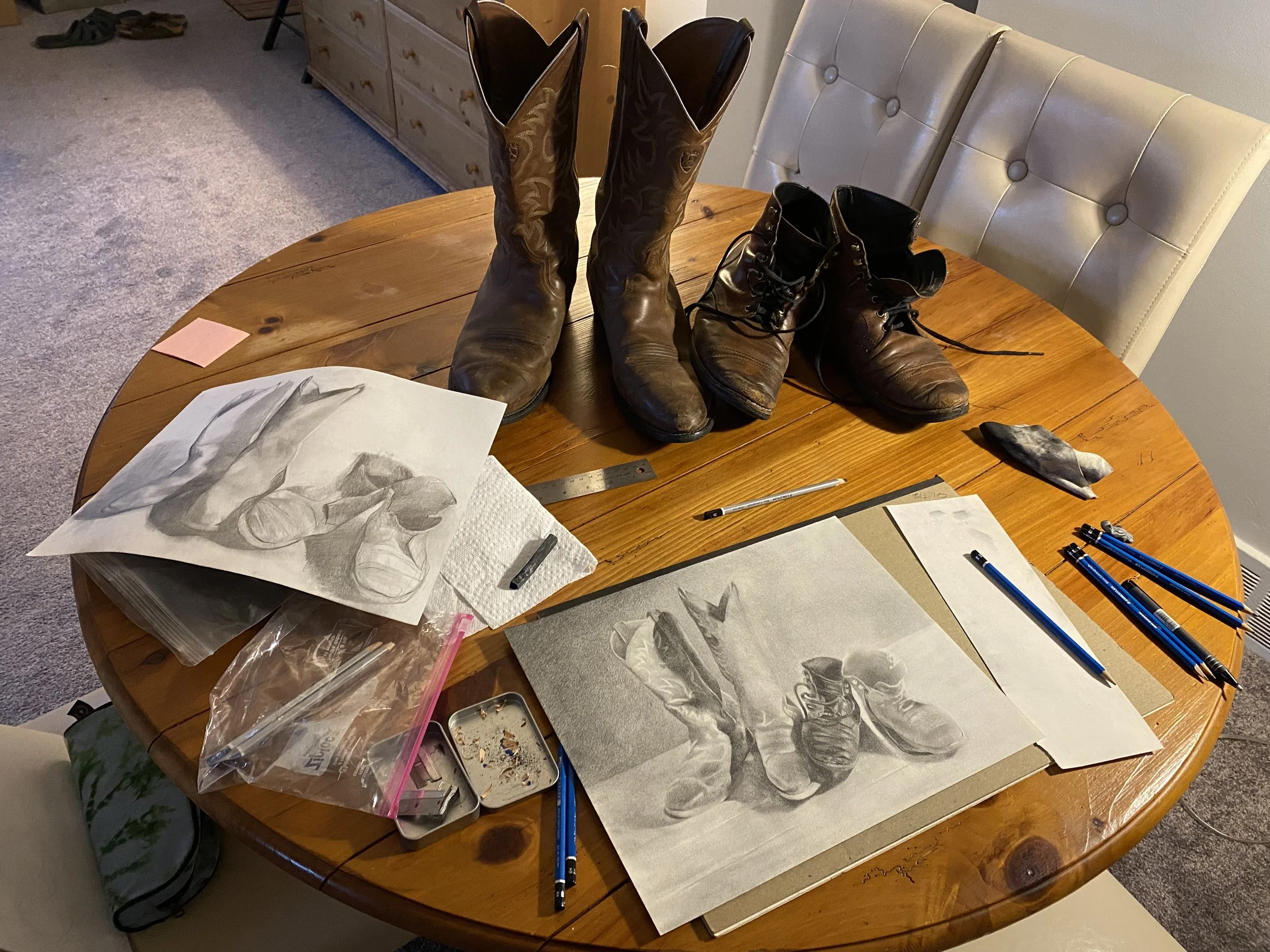 Still life, process, and various tools for By the Door.
