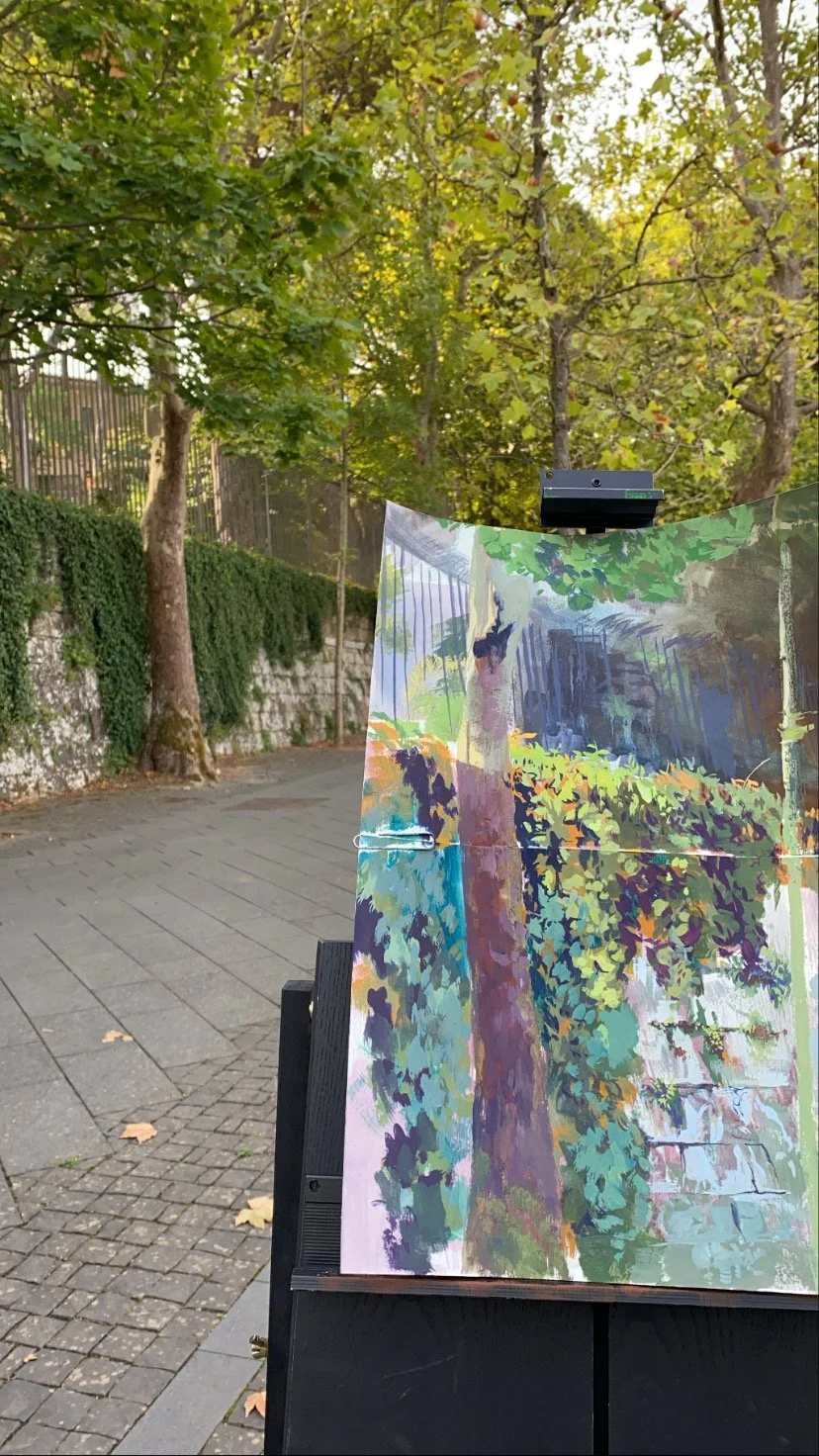 Bella Soenen’s studio practice primarily involves working from life by direct observation, often in plein aire. Working on site allows for the unique perception and misperception of the human eye to interact with the ephemeral beauty of the place or figure - a moment that will never appear the same way again. Gouache, pastel, and casein are some of the mediums she carries with her to observe. She returns to her studio with fleshed out studies that hold enough information for larger paintings to be produced. She tends to work on multiple pieces, types of surfaces and concepts at one time, as she finds they communicate with each other and further challenge her perception of the subjects. Often, Bella will build the frames for her work, a way to carry out her studio practice to its full potential.