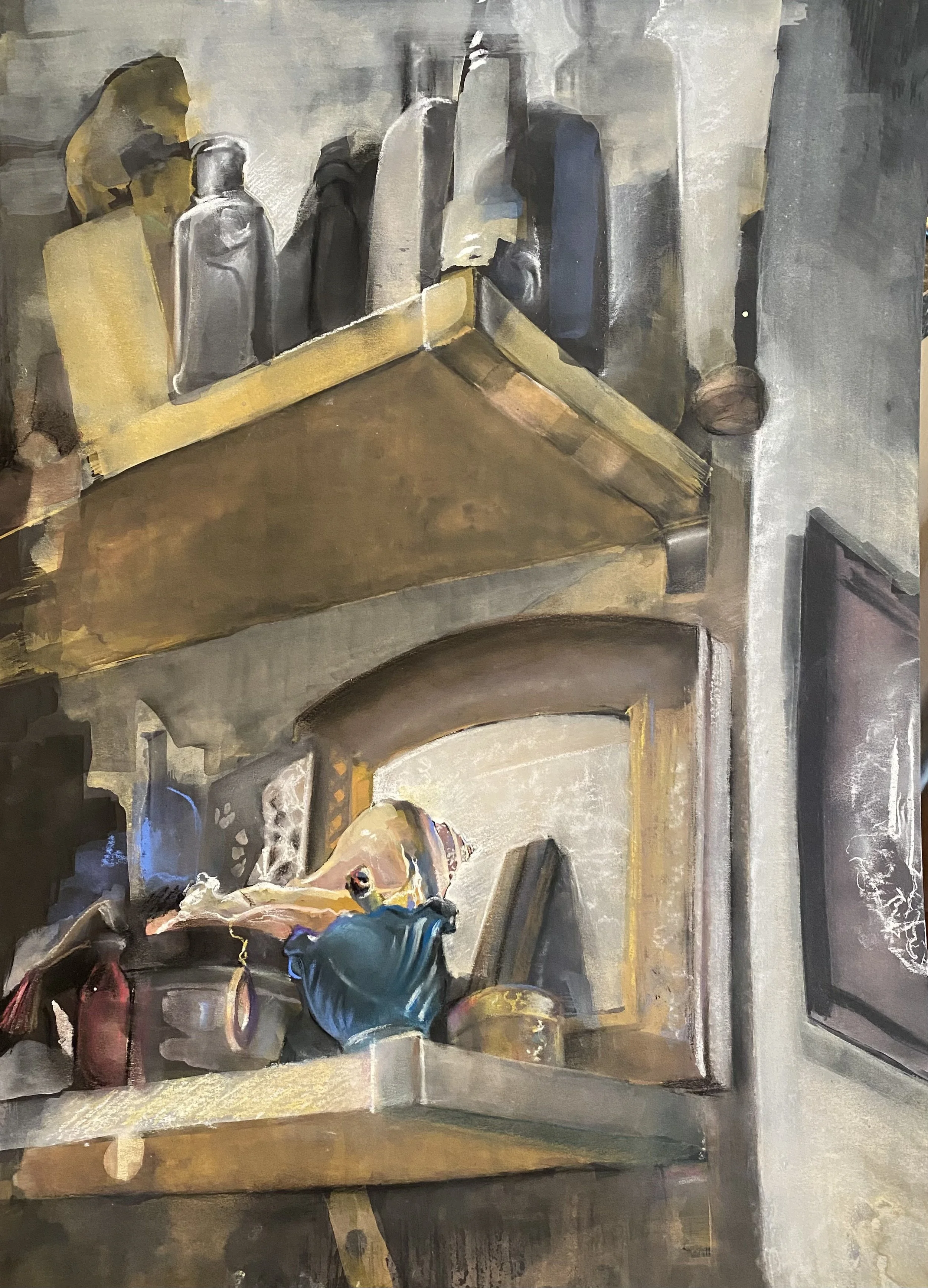 Examining proportions of shelf and objects and playing with focus and perception.